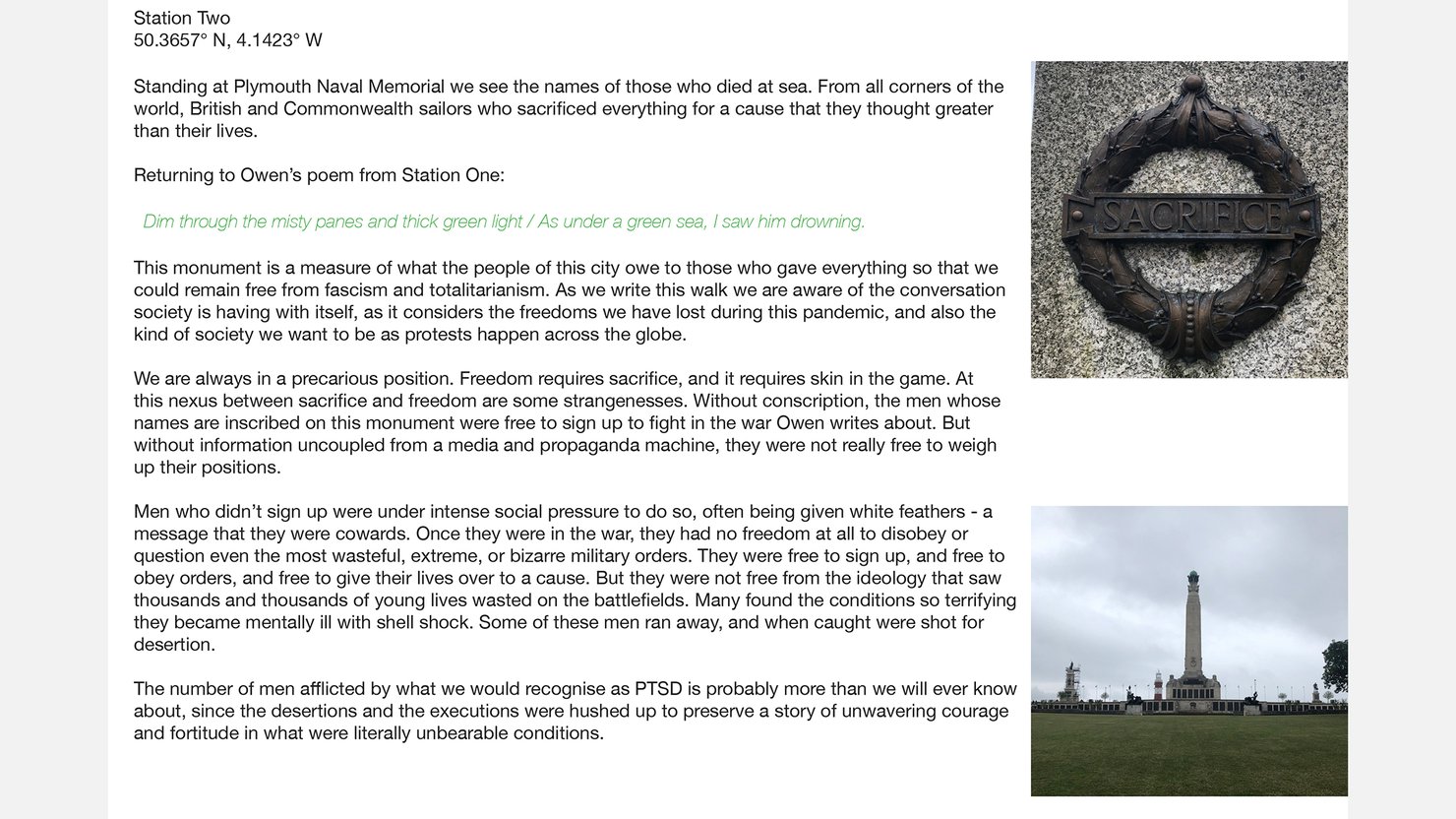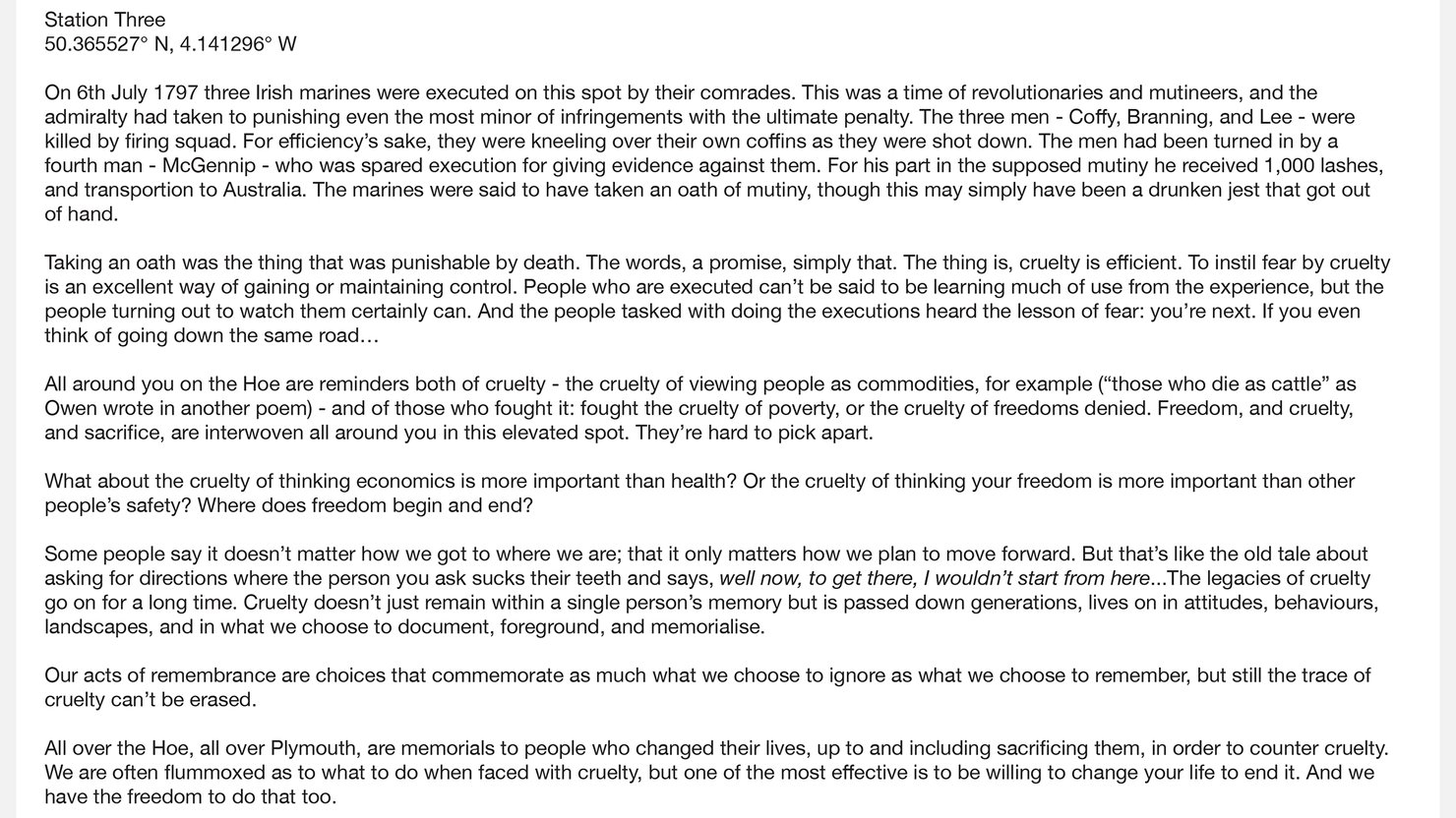 Both monuments were designed to produce at least the image of benefaction and care for the population of Plymouth. Water, at the time, was either bought, or often dirty to the point of being dangerous to life. The alternative for the working poor was beer, or gin, to drink, and when the poor drank any of these, whatever the consequences, they were seen as failings of the individuals rather than the system. They were free to choose what to drink, in a way, though these choices can be critiqued. Their freedom was of a strange and dangerous kind. The parallels are stark.